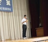 紹介が遅くなりましたが、1学年にインドから留学生を迎えています。名前はグネシャ・パルスさん、期間は8月26日~12月12日です。8月29日の東風祭開祭式の後、全校生徒に挨拶してもらいました。日本語を勉強し始めてわずか1か月ということでしたが、素晴らしい日本語での挨拶でした。クラスにも溶け込んでいるようです。楽しい日本での生活、東高での学校生活を送ってほしいと思います。
