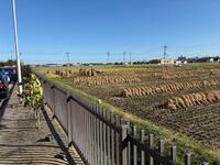 下の写真は、東北大会出場の懸垂幕、秋空に映える校舎、学校前の田んぼの稲刈りです。