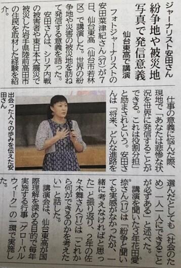 また、翌日の河北新報朝刊に今回の講演会の記事を載せていただきました。取材に来ていただいた記者のN・Aさん、ありがとうございました。