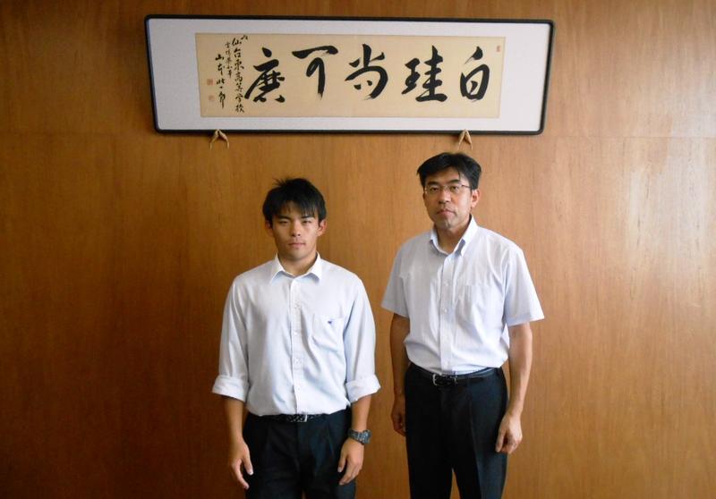 囲碁将棋部に所属する普通科1年の有働将之君が校長室に訪ねてきてくれました。