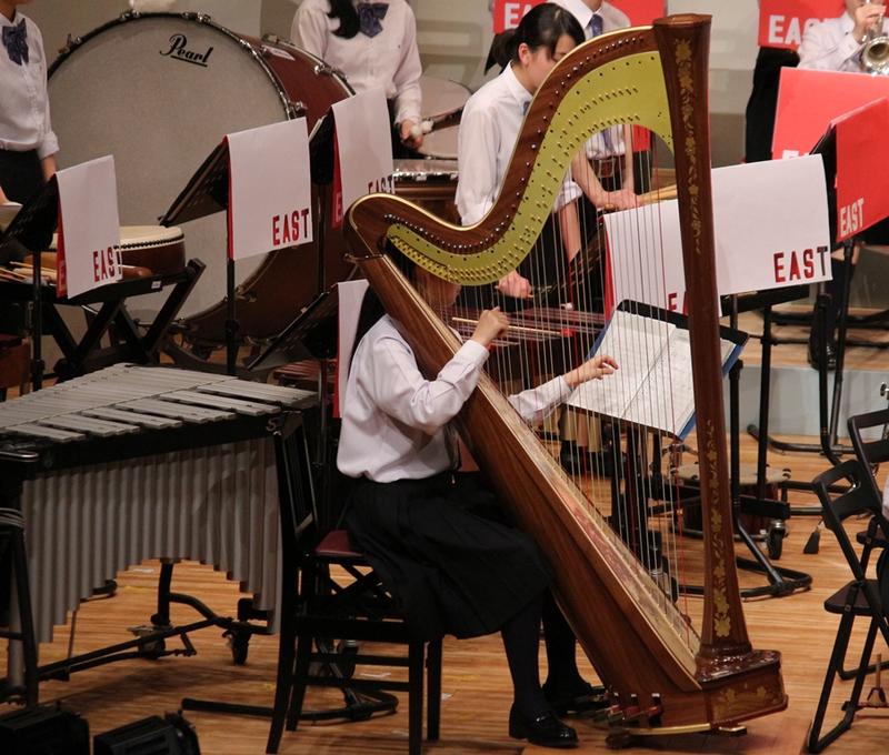 楽器「ハープ」の購入により、表現手段が増え、より美しく音色を奏でることができるようになりました。吹奏楽部の今後の活躍にご期待ください。
