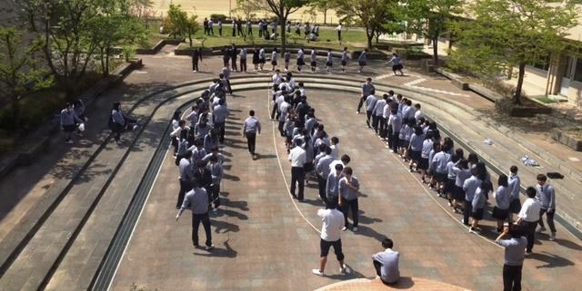 4月27日(水)昼休みの様子です。明日28日(木)は運動会実施予定日です。各クラスが中庭で長縄跳びの練習をしています。運動会に向けてクラスの団結力は深まったでしょうか。