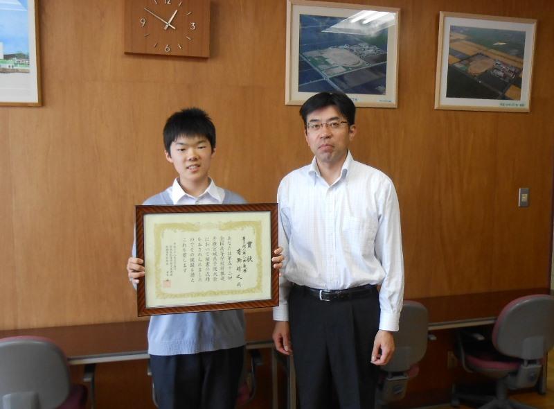 囲碁将棋部に所属する普通科1年の有働将之君が校長室に訪ねてきてくれました。