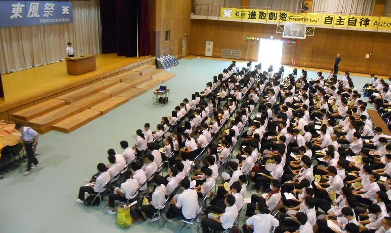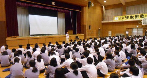 9月13日火曜日、体育館にて総合的な学習の時間(国際分野)についての説明会が行われました。