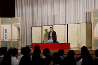 11月14日(木)の午後、桂かい枝さん、翁家勝丸さん、柳家小んぶさんをお招きし、本校体育館で「古典落語と英語落語」を鑑賞しました。後半では、生徒や教員も曲芸や落語に挑戦するなど大盛況の芸術鑑賞会でした。