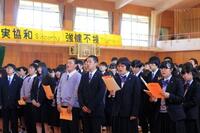 校長先生の熱唱で始まった壮行式。各部の部長が総体にかける意気込みを語ってくれました。3年生にとっては最後の総体です。全校生徒が気持ちを一つにエールを送り、選手の健闘を祈りました。頑張れ!東高生!