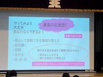 講話内容も素晴らしく、まず子どもの話を「傾聴」し、「信頼する」「承認する」そして「任せる」こと。親子であっても個人と個人、相手を尊重し、自分の人生と重ねないこと。