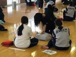 午後からは、剣道場において救急救命講習会が開かれました。講師に昨年度に引き続き日本赤十字宮城支部から木村あつ子先生に来ていただきました。運動部員やマネージャー、教員が参加し、心肺蘇生法とAEDの使い方を学びました。